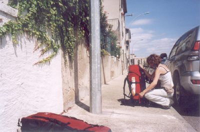 Příjezd do Carcassonne - Lucinka již jako správný domorodec všude s bagetou.