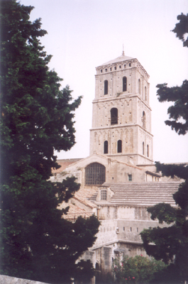 Věž katedrály St – Trophime. Všimněte si vymakaného systému okapů.